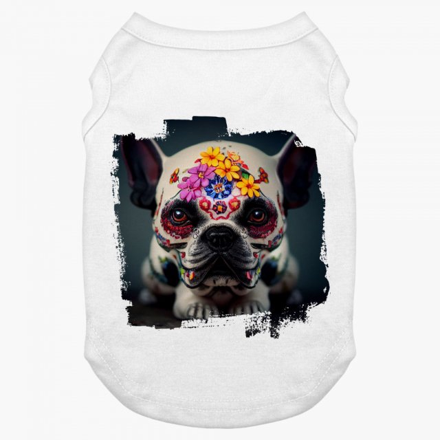Bulldog Sugar Skull Dog Tank – Floral Dog T-Shirt – Printed Dog Clothing