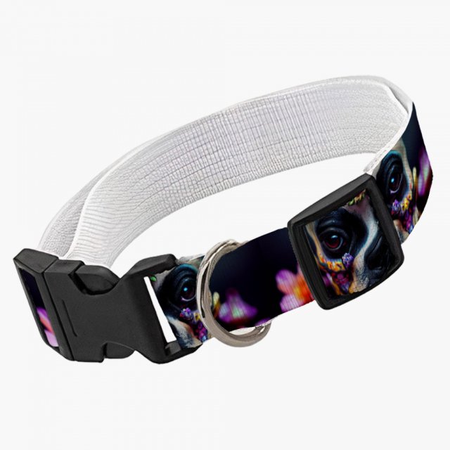 Sugar Skull Pet Bandana Collar is made of 100% polyester, which is soft and comfortable for your pet to wear, and does not harm their skin and fur. It is lightweight and will not affect the running and walking of pets. French Bulldog Print Pet Bandana Collar can be washed and reused. Floral Pet Bandana Collar is designed and printed in California.