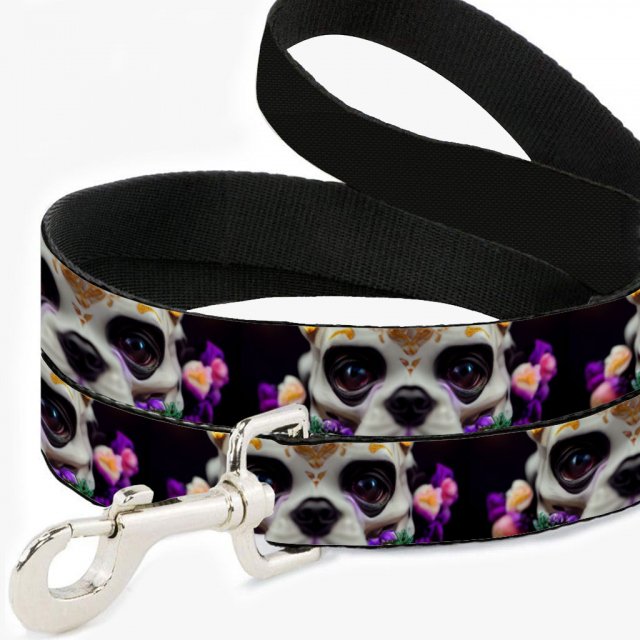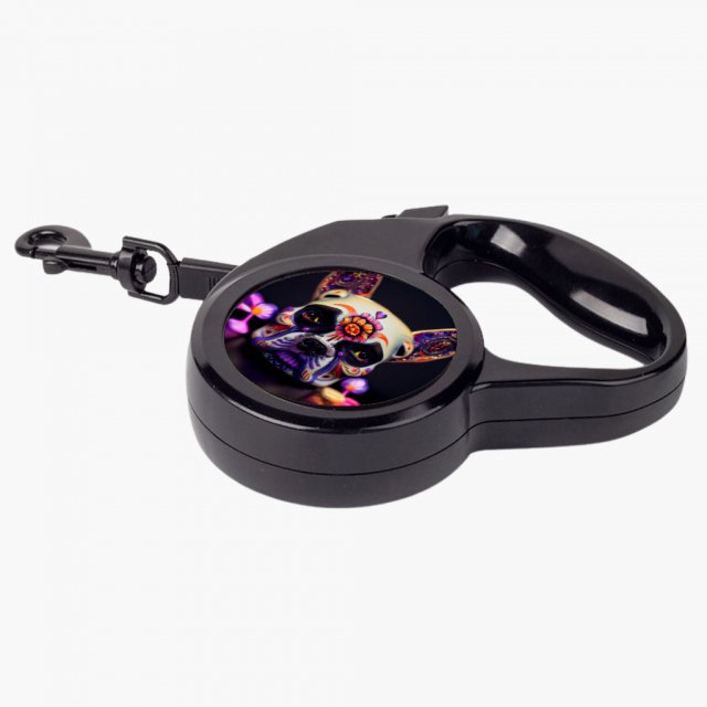 French Bulldog Retractable Pet Leash – Sugar Skull Leash – Cute Dog Leash
