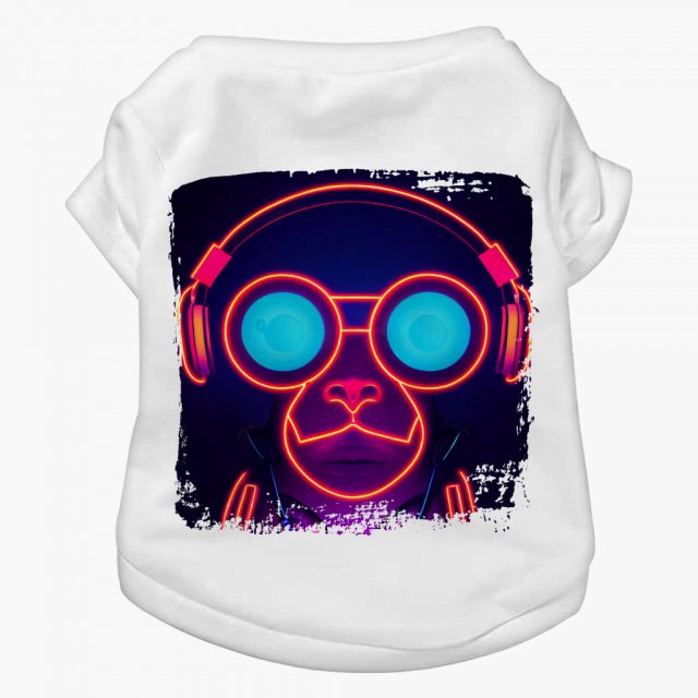 Monkey Wearing Headphones Dog T-Shirt – Neon Light Dog Shirt – Silhouette Dog Clothing